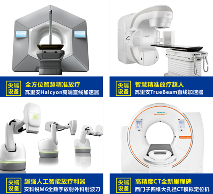 为了满足患者对高端医疗水平的需求,广州中医药大学金沙洲医院国际肿瘤医疗中心陆续引进了在全世界范围内都处于领先地位的设备:国内首台西门子SOMATOM-Confidence CT模拟定位机、首台带有多页光栅与动态跟踪模式的M6放射外科射波刀,瓦里安Halcyon医用直线加速器和瓦里安TrueBeam直线加速器等,这些大型先进肿瘤治疗设备组合在一起,形成了一套先进、完整的“智慧精准放疗”技术体系。可高精准、高疗效、低损伤治疗各类早中晚期肿瘤,为华南地区广大患者提供与国际同步的高质量医疗服务。