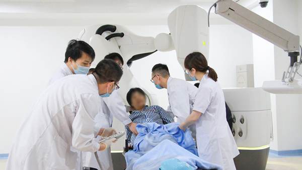 对于鼻咽癌,单纯放疗就可以根治。目前早期肺癌也可以通过立体定向放疗来根治,治疗效果其实可与手术相媲美。立体定向放疗,为那些不能手术的患者提供了新的希望。广州中医药大学金沙洲医院国际肿瘤医疗中心紧跟世界范围内立体定向放疗领域的最新进展和治疗规范,斥巨资引进了国内首台全数字化M6射波刀,它是目前全球最先进的大型立体定向放射外科治疗设备之一,全球唯一一款同时拥有亚毫米级精度、图像引导自动照射校正、呼吸运动同步追踪系统,以及脊柱定位系统(X-Sight)等多项最为先进的技术。可治疗全身各部位的肿瘤,只需3~5次的照射,即可杀死肿瘤组织,是唯一综合“无伤口、无痛苦、无流血、无麻醉、恢复期短”等5大优势的全身放射手术形式。