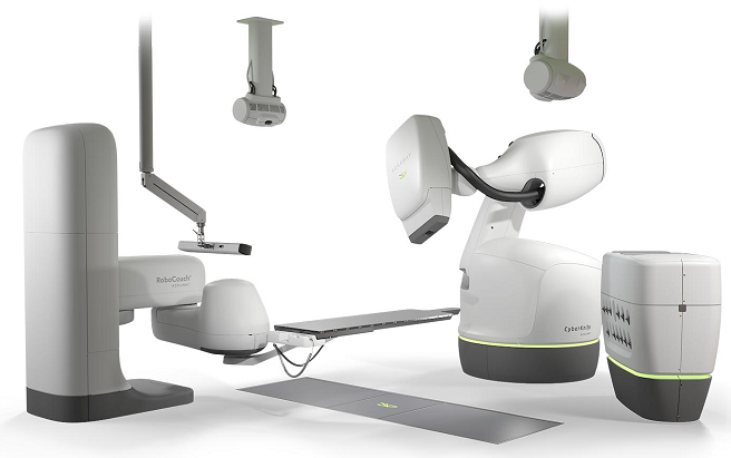 第一、采用同步呼吸追踪系统,使射波刀在治疗过程中可以持续追踪由于呼吸运动导致的肿瘤运动,这使得照射精度达到毫米级的精准度。也就是说,仪器可以跟着呼吸来跳跃,不会因靶区随呼吸运动而“脱靶”达到精准照射治疗的目的。